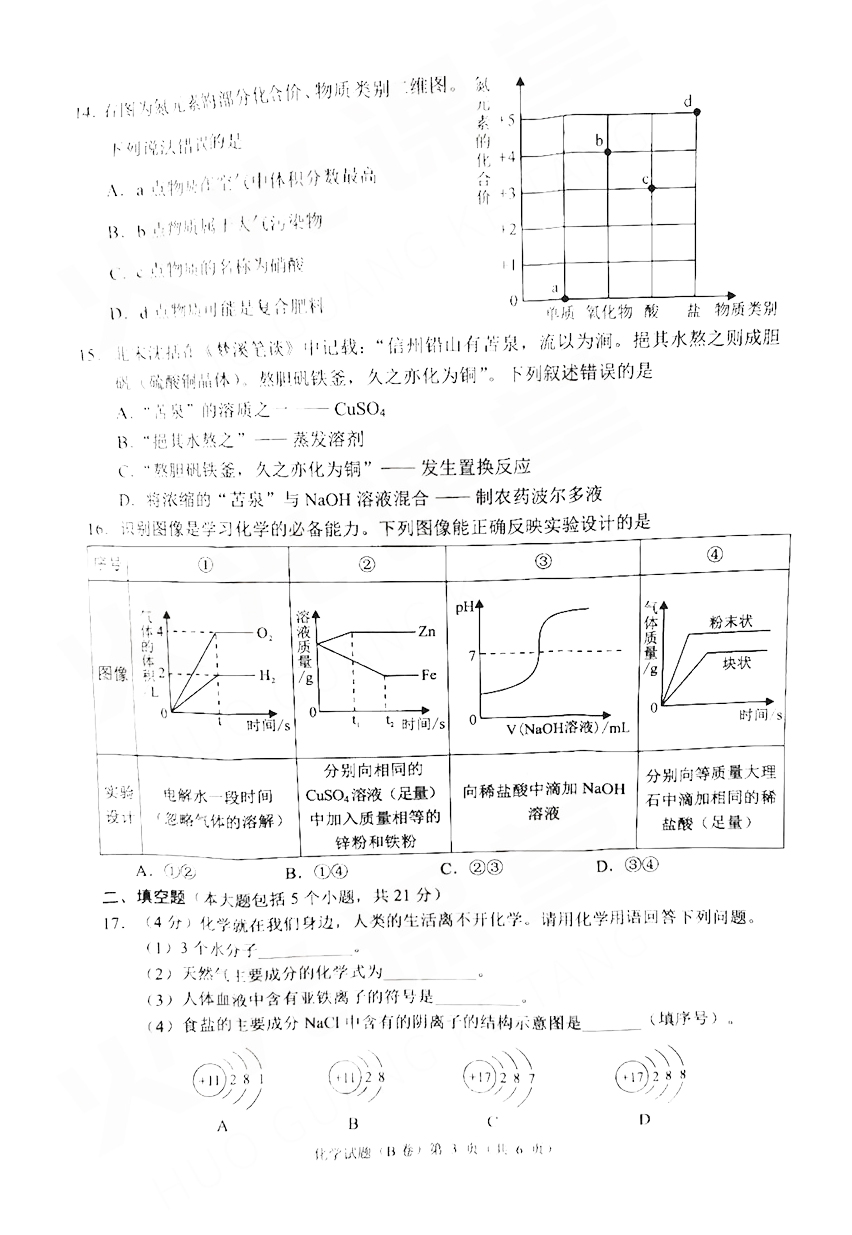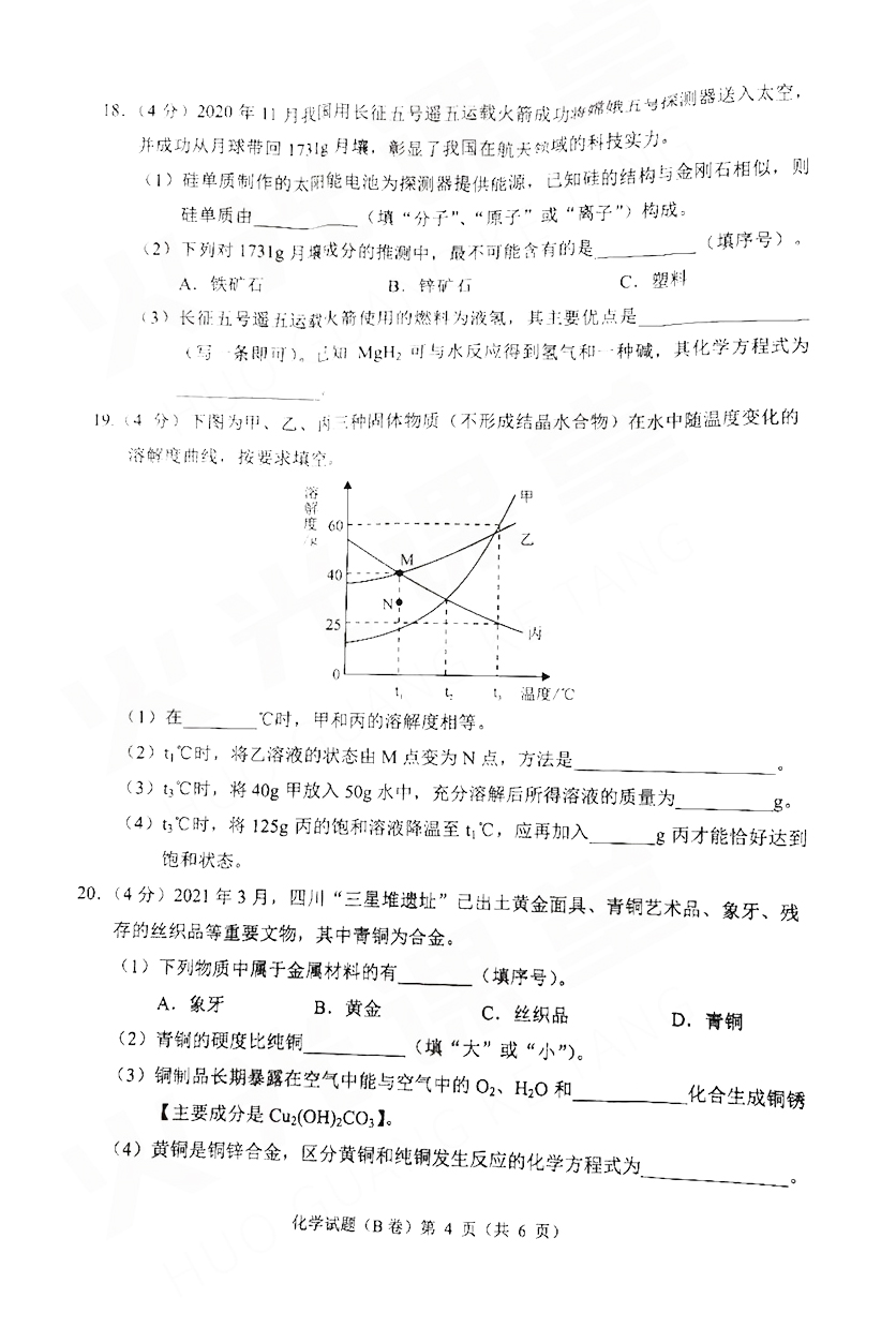 [组图]2021重庆中考化学试题及答案B卷发布