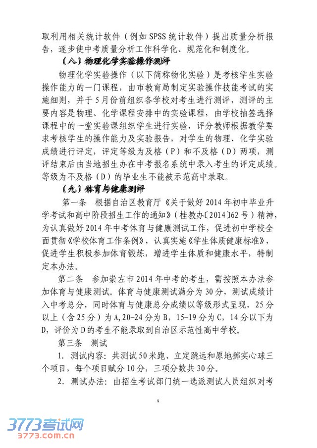 [组图]2014崇左中考与高中招生工作实施方案通知