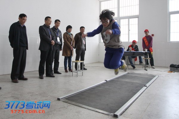 马占文一行视察立定跳远考试场地。