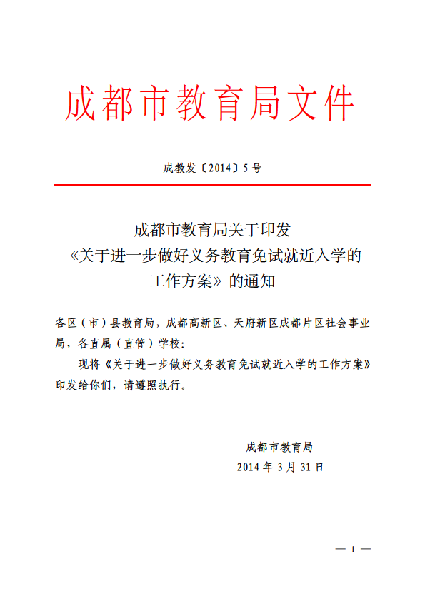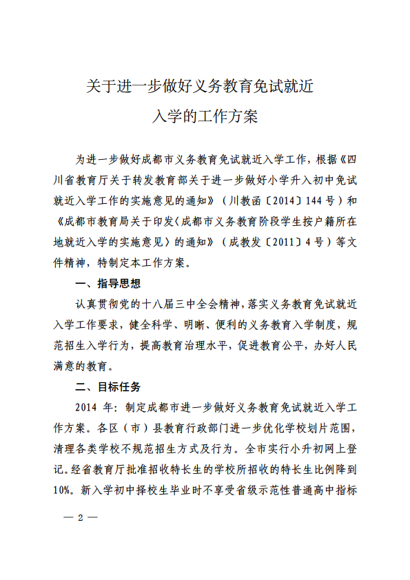 关于印发《关于进一步做好义务教育免试就近入学的工作方案》的通知