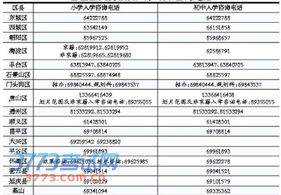 各区县义务教育入学政策咨询电话