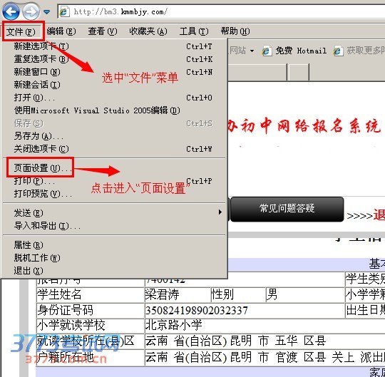 2.  选择浏览器中的“文件”菜单,点击进入“页面设置”