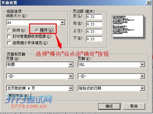 3.  选择“横向”打印功能,并点击“确定”按钮。