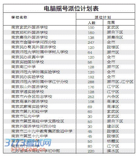 据了解,南京外国语学校计划招收320名初一新生,招生范围是具有南京市玄武区、秦淮区、建邺区、鼓楼区、原浦口区、原大厂区、栖霞区、雨花台区及江宁区东山地区常住户口,并具有走读条件的应届小学毕业生。通过电脑派位可以参加该校英语能力测试的人数为招生计划的8倍。此次公布的民办校招生计划均为电脑摇号派位计划,其余招生计划由各校自主招生完成。