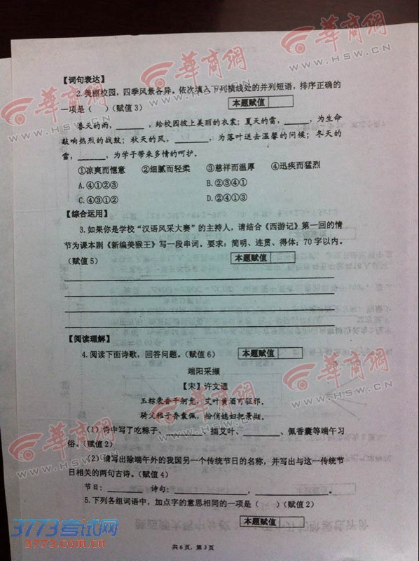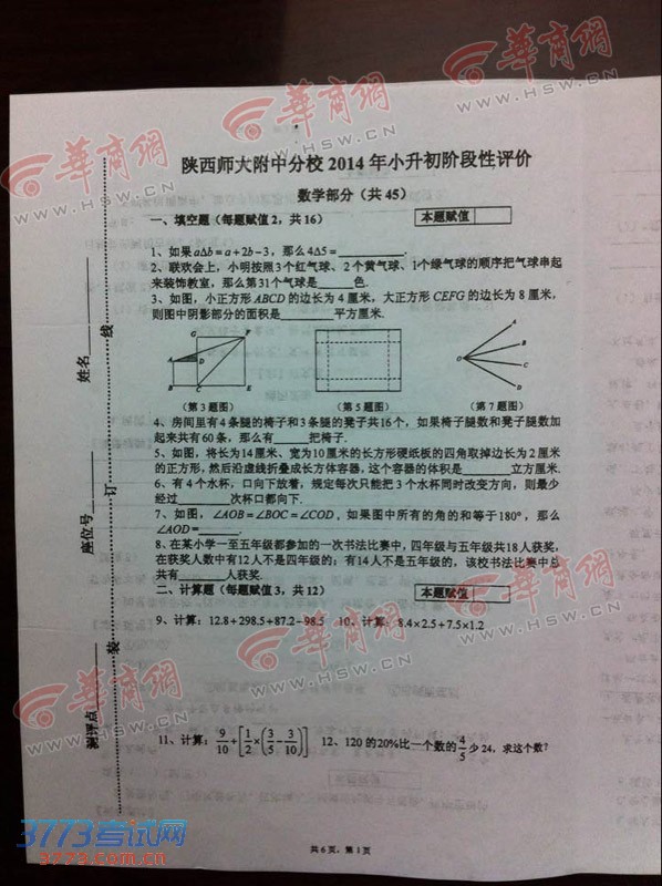 华商网讯 5月31日上午,西安民办学校“小升初”阶段性测评进行,据悉,今年全市40所民办初中中,有23所符合条件的民办初中参与综合素质养成阶段性评价。华商网新鲜发布今年的小升初综合素质测评卷,接受网友和家长的评判。此为2014年陕师大附中小升初综合素质测评内容。