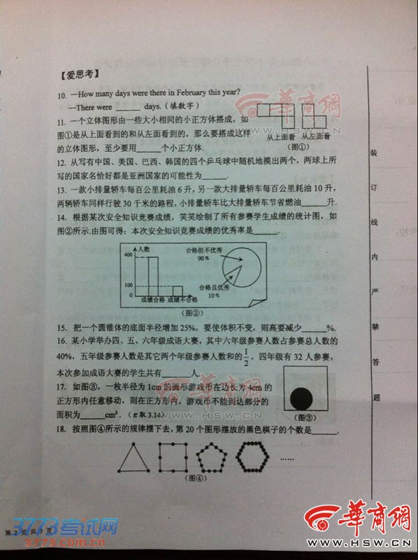 [组图]2014西工大附中小升初综合素质测评内容试题