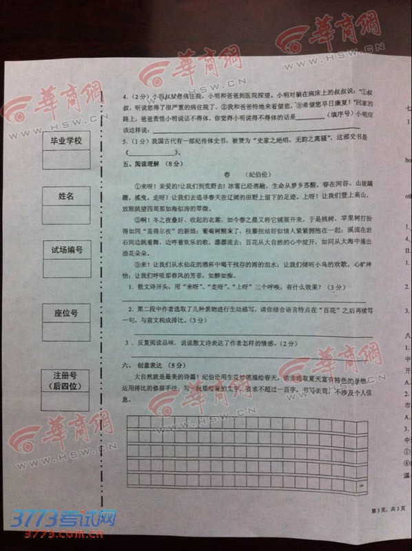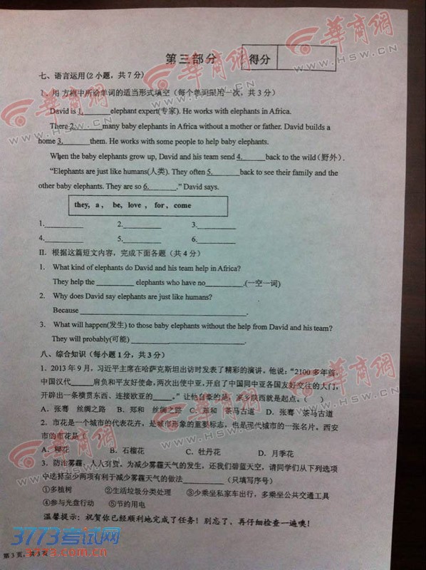 [组图]2014西安交大附中小升初综合素质测评内容试题