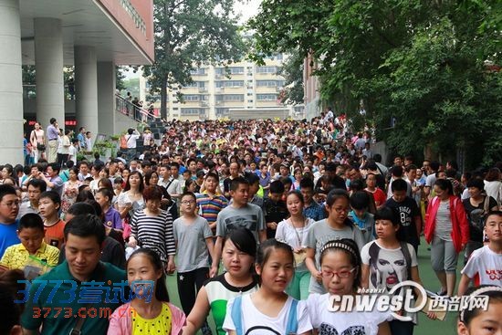 6月12日上午10时30分,阶段性评价结束,家长和学生一起走出校门。