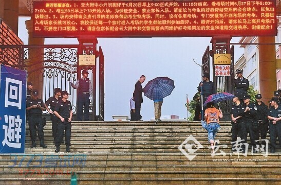 直到12时40分——考试结束1个半小时之后,云大附中校门口的阶梯上、附近依然有近10个孩子在等待父母。记者一一询问,原来他们都不是像往年一样跟父母失联,而是“已经给爸妈打了电话,他们说堵在附近的路上了,让我不要乱走,就在学校门口等。”
