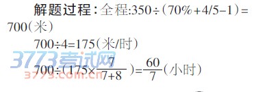 一、题目:甲乙两地有货车和客车同时相向而行,4小时后相遇,相遇之后继续走,当两车相距350米时,货车走了全程的70%,客车走了全程的4/5,求货车走完全程的时间?