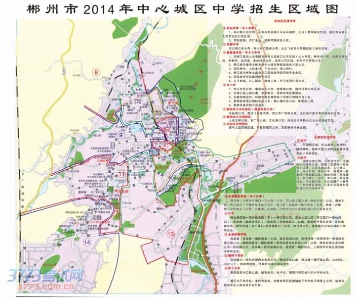 请点击下载附件查看:郴州市2014年中心城区中学招生区域图.rar