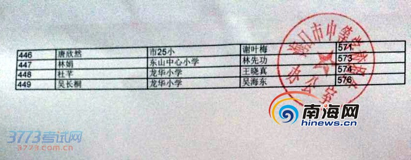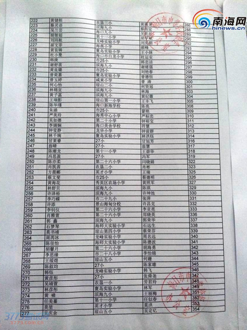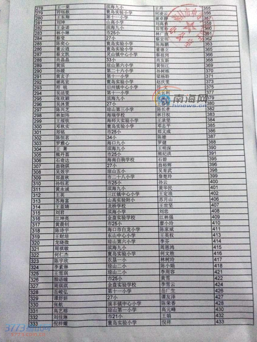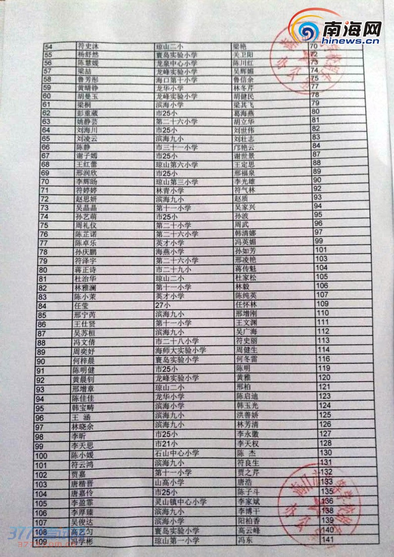 [组图]2014海口小升初海南华侨中学指标到校生摇号名单