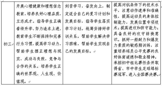 按省颁课程计划开足开齐课程,并把体育与健康课程、足球校本课程统筹开设运动课程,周一至周五各2节,周六上午3节,每周共开设13节足球运动课。 | 1.为厦门市培养足球后备人才。 2.学习期满经考试合格,发给初中毕业证书。 3.初中毕业后,文化课成绩优良、足球专项特长突出者,可申请保送直升本校高中足球体育班继续学习。 |