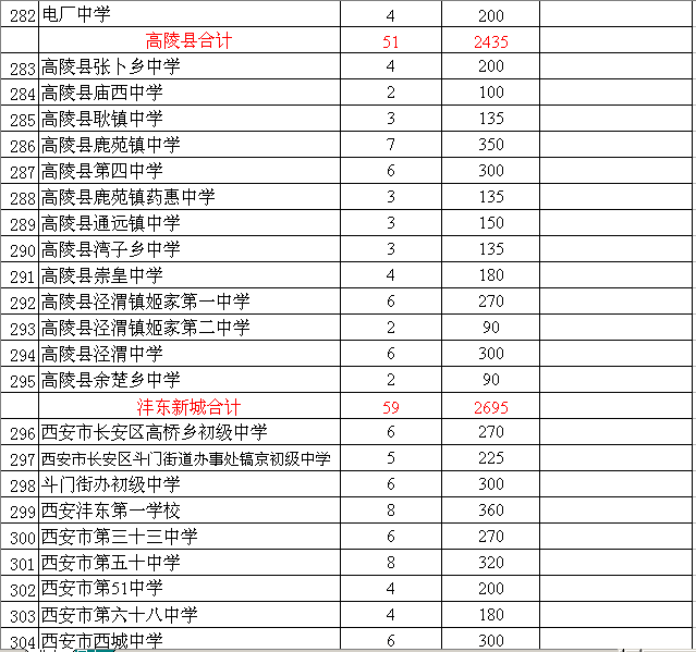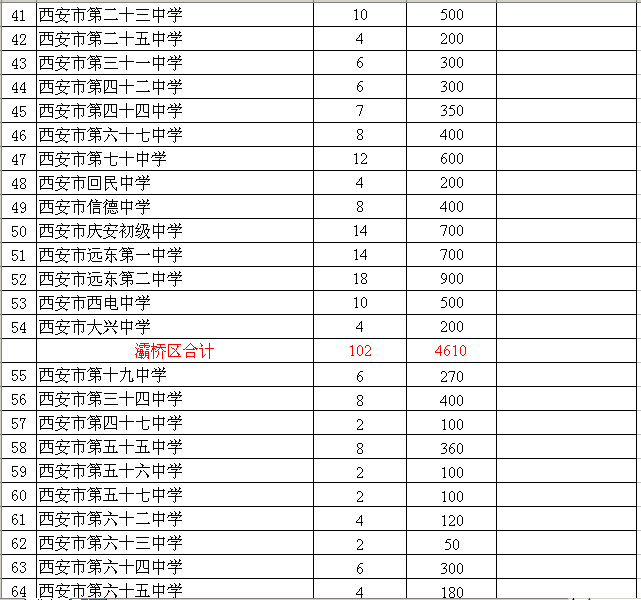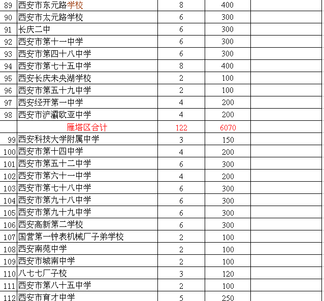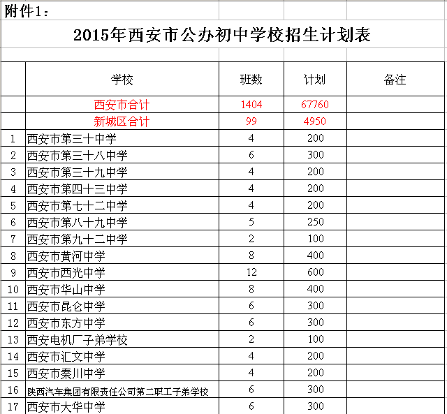 附件:1. 2015年西安市公办初中学校招生计划