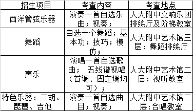 一、艺术特长生招收项目、范围、人数及考查安排: