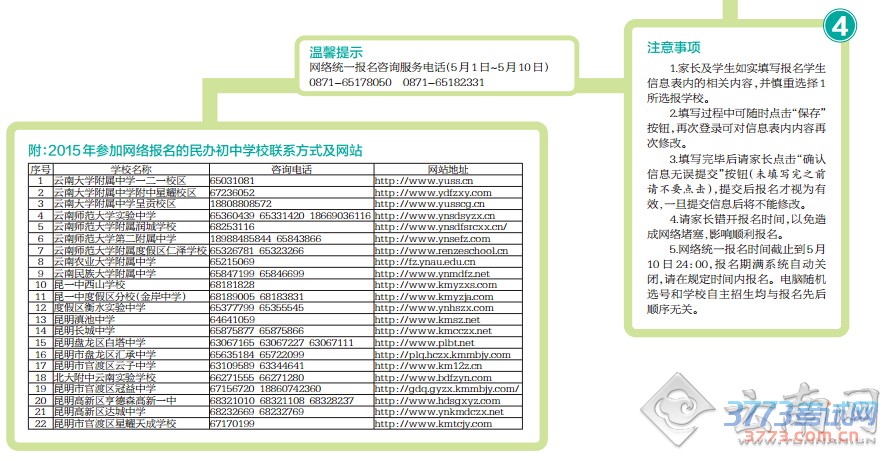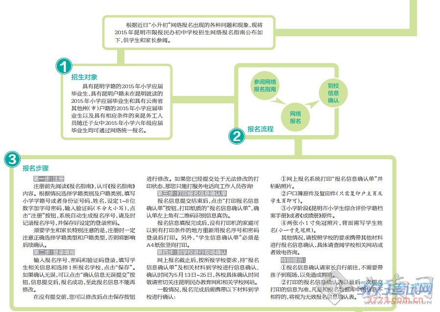 根据近日“小升初”网络报名出现的各种问题和现象,现将2015年昆明市限报民办初中学校招生网络报名指南公布如下,供学生和家长参阅。