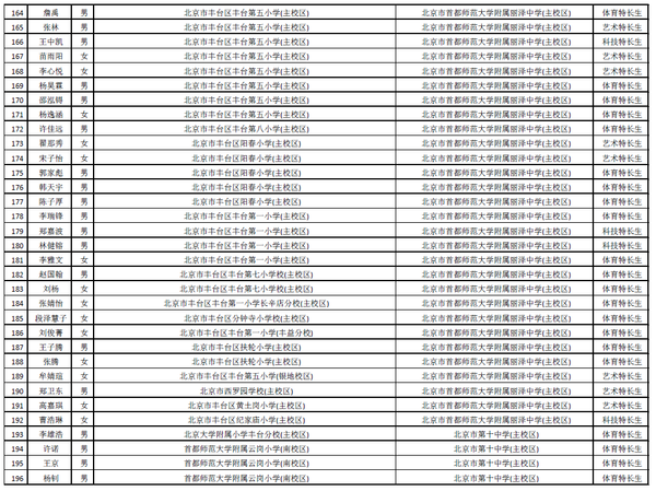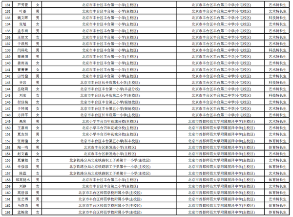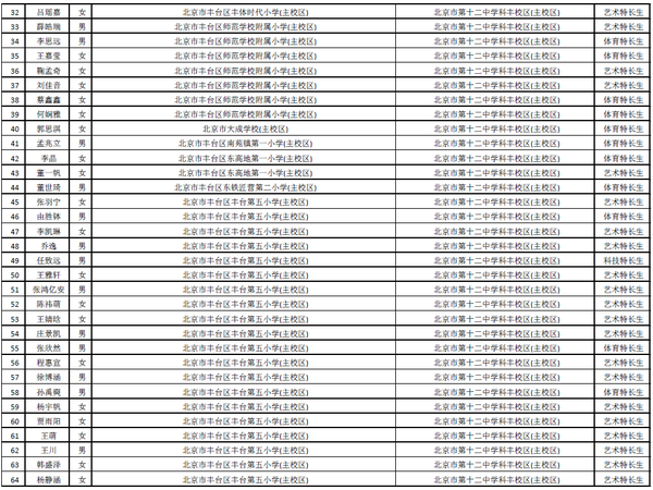 丰台区5月18日公布了2015小升初特长生拟录取名单进行公示,共有325名丰台学生通过特长生上岸成功进入自己理想的学校。