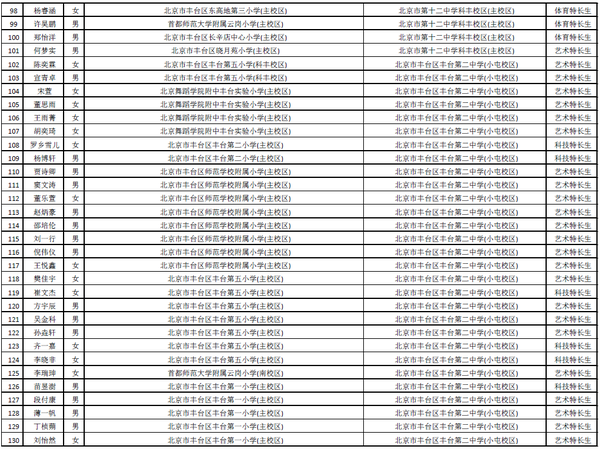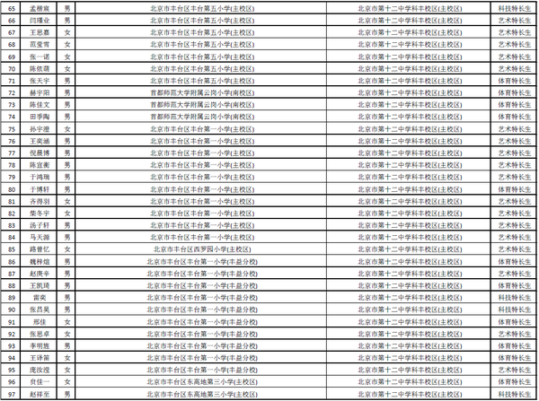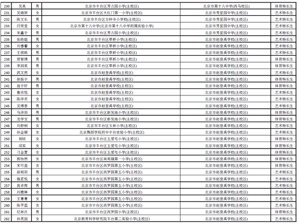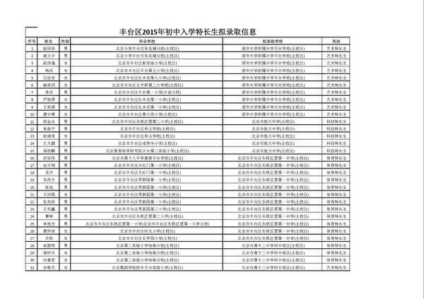 [组图]2015北京丰台区小升初特长生录取名单公示