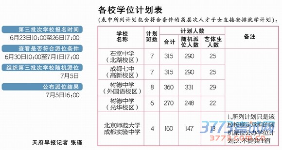 7月5日,成都市招考办将统一组织第三批次学校随机派位。
