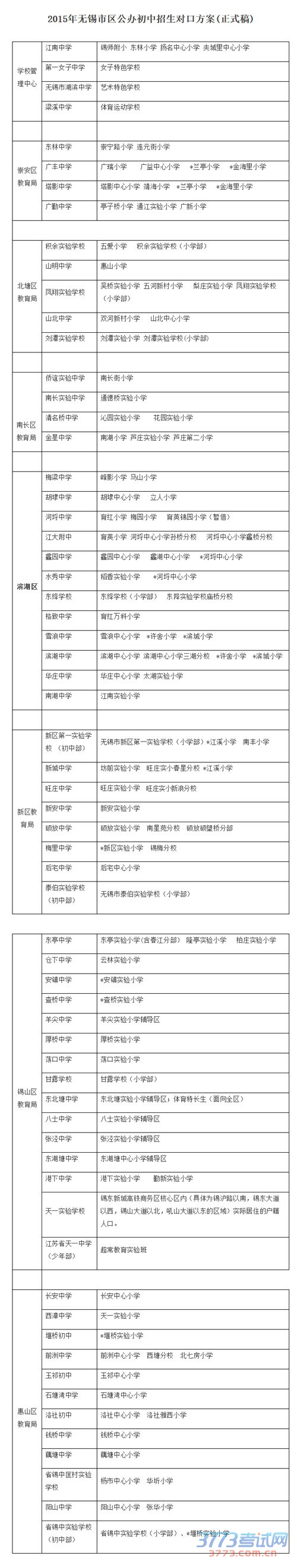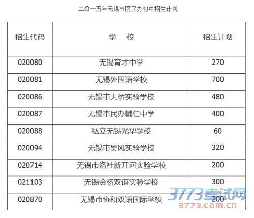 6月17日,无锡市教育局发布《2015年无锡市区公办初中招生对口方案》以及《关于印发二○一五年无锡市区民办初中和公办特色初中(班)招生计划的通 知》(下称通知)。民办初中方面,育才中学今年招生比去年少30个名额,另外外国语学校、光华学校、无锡协和双语学校招生人数均比去年有小幅增加。另外, 根据今年的初中招生工作意见,初中招生工作一律安排在小学毕业考试后进行,所有初中学校在小学毕业考试前均不得承诺和确认录取新生,不得提前收取任何费 用;同时坚持初中免试入学,公办初中免试对口就近入学。所有初中学校包括公办学校、民办学校都不得采取考试方式选拔学生,也不得以“奥数”等竞赛成绩或获 奖证书作为依据进行新生择录。