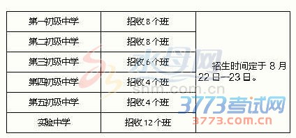 根据生源数量、各初中接收学生能力和学生家庭住址分布情况,开发区教体局确定2015年初中一年级招生计划为42个班,具体为:第一初级中学招收8个班,第二初级中学招收8个班,第三初级中学招收6个班,第四初级中学招收4个班,第五初级中学招收4个班,实验中学招收12个班。