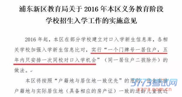 今年,徐汇和浦东都分别在2016年的《义务教育阶段学校招生入学工作的实施意见》中,提到了“五年一户”: