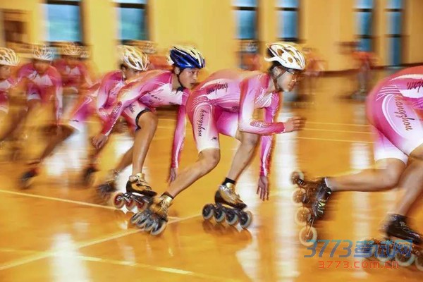 采荷实验学校轮滑队在进行小弯道专项训练。