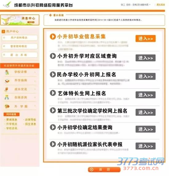 认真阅读消息中心中的信息。阅读信息后,点击“下一步”进入小升初业务功能模块界面。