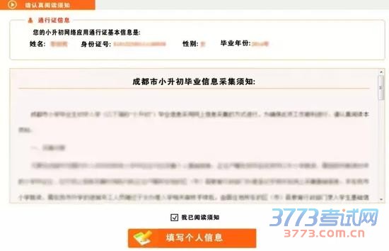 认真阅读信息采集须知,阅完后在“我已阅读须知”处打勾进入个人信息页面。