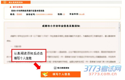认真阅读信息采集须知,阅完后在“我已阅读须知”处打勾进入个人信息页面。