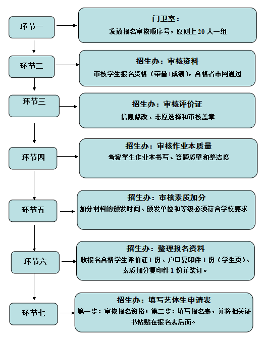 第二步:学校进行现场筛选,符合学校要求的学生通过审核获得面谈资格,取得特长证书获得加分资格。