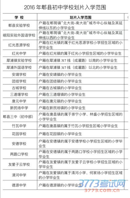 [图文]2016成都郫县小升初学校划片入学范围出炉