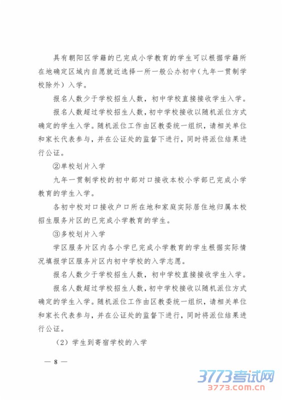相关文章 北京丰台区2016年小学初中寄宿学校招生工作方案2016北京丰台区小升初体育艺术和科技特长生工作2016年非京籍在朝阳区小学初中材料审核细则2016北京朝阳小升初就近分配 新增就近登记入学2016北京朝阳区小升初政策新增登记入学方式2016北京朝阳区小升初政策问答及流程手册公布北京市东城区2016年小学初中入学工作的意见2016北京东城小升初分三批次电脑派位2016北京西城区小学初中招生入学工作的意见2016北京西城区小升初具有招生资质的学校名单 触屏版 电脑版 3773考试网 琼ICP备12003406号-1