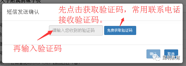 10、“确认信息无误提交”按钮是报名信息提交按钮,点击后将弹出验证码输入框,先点击“获取验证码”按钮,系统将验证码发送给常用联系电话,之后再输入验证码,点击“确认”按钮后系统接收提交的报名信息,点击此“确认”按钮后,填报信息和填报学校将不能更改,请谨慎点击“确认”按钮!