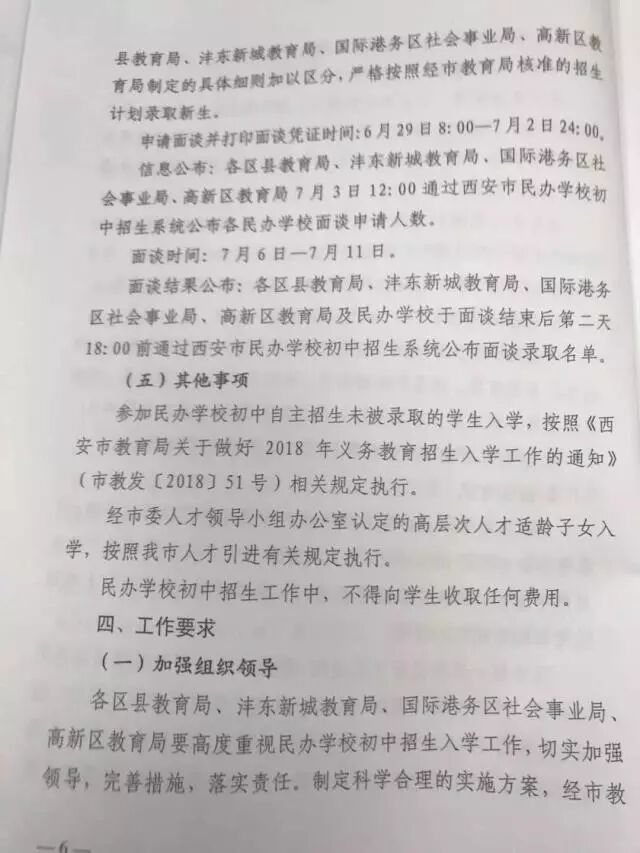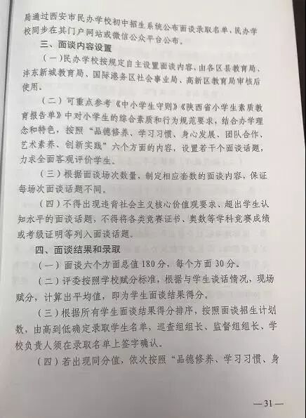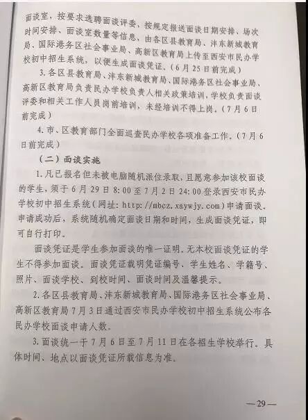 各区县教育、沣东新城教育局、国际港务区社会事业局、高新区教育局将于各民办学校面谈工作全部结束后第二天的18时通过西安市民办学校初中招生系统公布面谈录取结果,各民办学校同步公布本校面谈录取结果。