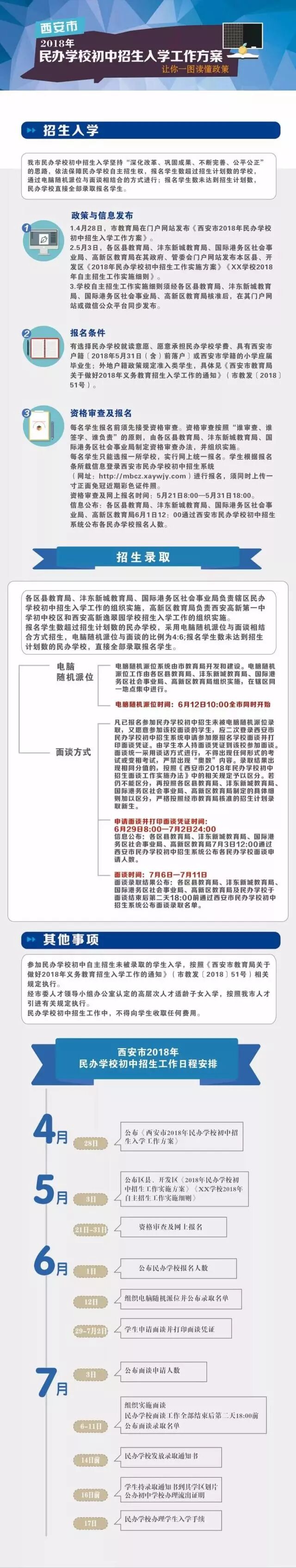 1、民办学校初中招生对象为有选择民办学校就读意愿的,愿意承担民办学校学费,具有西安市户籍(2018年5月31日以前落户的)或西安市学籍的小学应届毕业生,以及外地户籍规定的准入类学生。