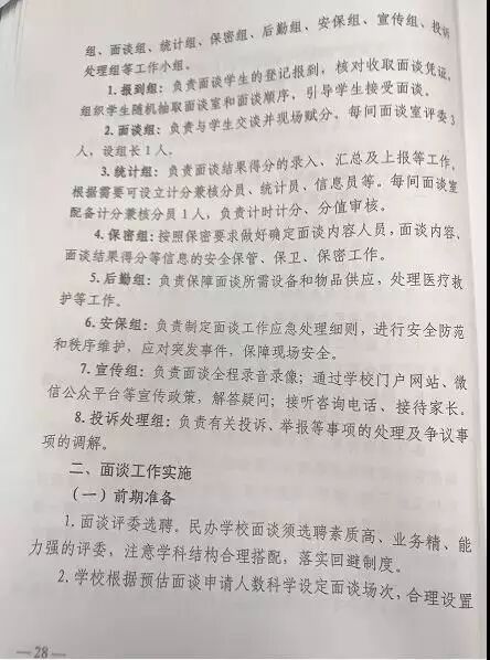 面谈统一采取谈话的方式进行,不得出现任何形式的考试或变相考试。面谈工作全程接受教育部门巡查和社会监督,市区教育行政部门联合形成若干巡查组,各区县开发区教育局组建公众监督团全程监督,面谈过程全程录音录像。