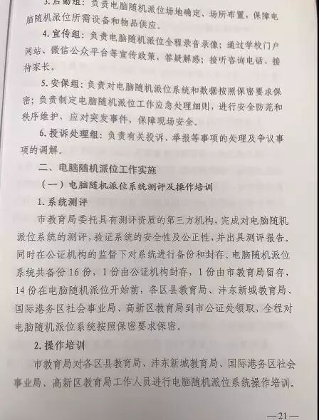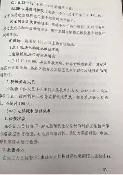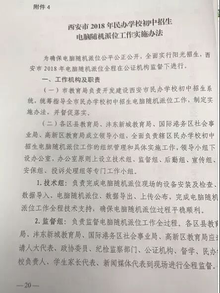 3、电脑派位工作由各区县教育、沣东新城教育局、国际港务区社会事业局、高新区教育局组织实施,在辖区同一地点集中进行,全市于6月12日10时同时开始,电脑派位系统全市统一开发,区县教育局和开发区教育局统一使用,电脑随机派位时将邀请人大代表、政协委员、纪检监察部门、公证机构、督学、民办学校负责人、学生家长代表、新闻媒体代表等现场观摩,全程监督。