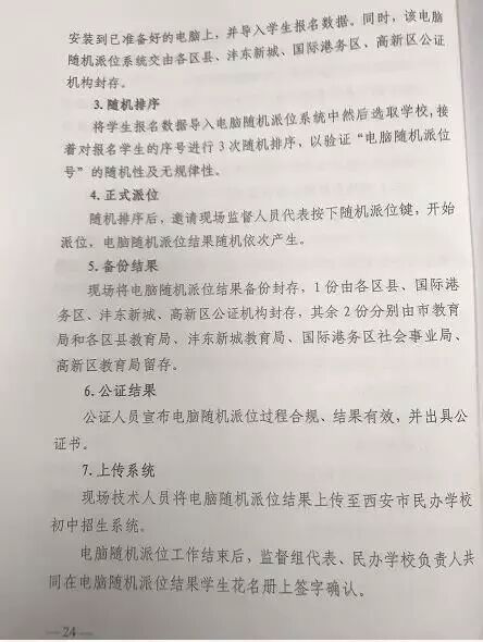 随机派位结束后现场第一时间将公示后的派位结果通过西安市民办学校招生系统公布,并报西安市教育局备案,民办学校同步公布本校电脑随机派位结果。