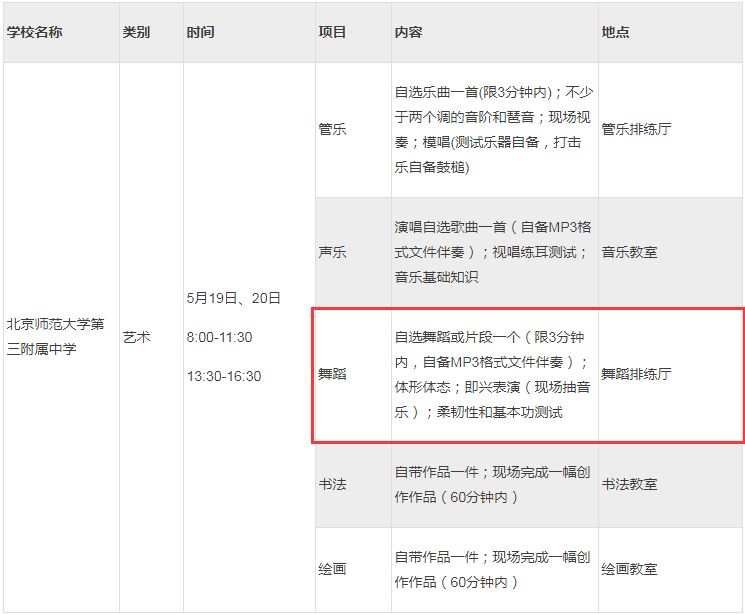 3、报名条件:获得《2018年海淀区初中入学特长生推荐表》的小学六年级艺术特长生方可报名。具体要求见专业考查安排表的内容。