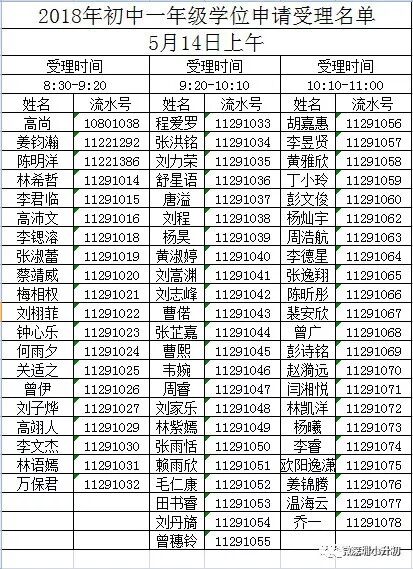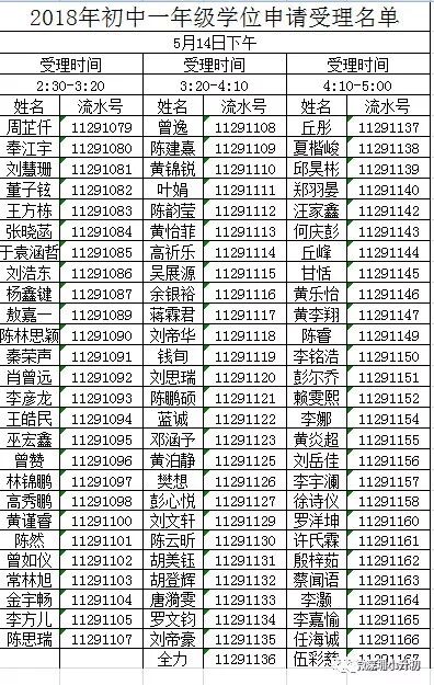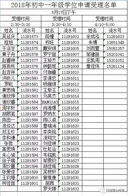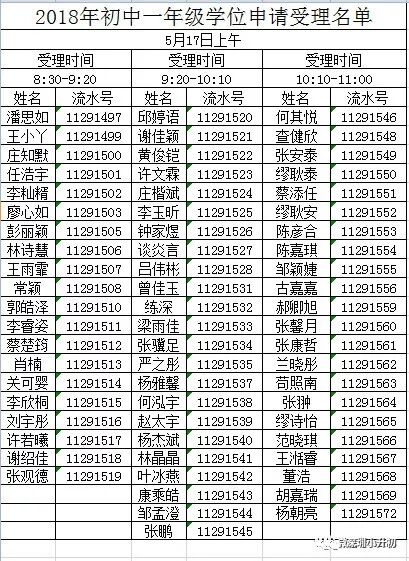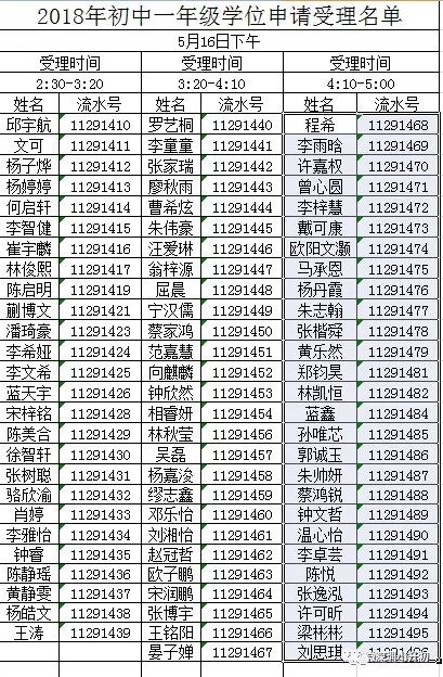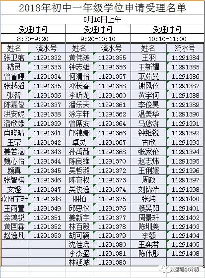 为保证申请秩序安全有序,请查阅初一受理详细名单,我们将分时间段办理学位申请手续,安排如下: