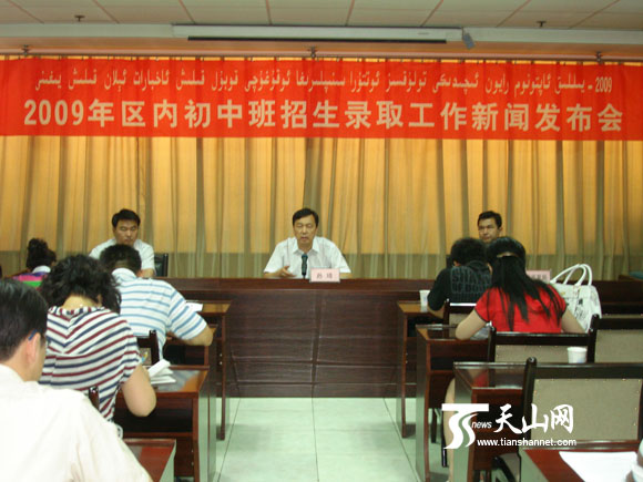 天山网讯(记者王丽丽摄影报道)7月4日,记者从自治区内地新疆学生工作办公室召开的新闻发布会上获悉,今年新疆内初中班录取最低控制分数线为170分,共录取区内初中班新生5233名,其中少数民族学生4672名,汉族561名。