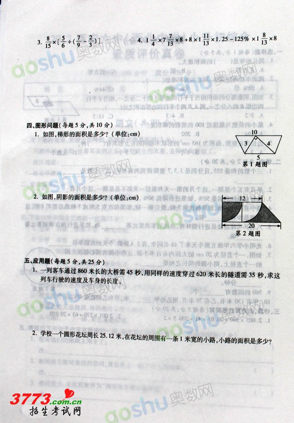 [组图]2012西安六中西北中学小升初综合素质评价真题答案