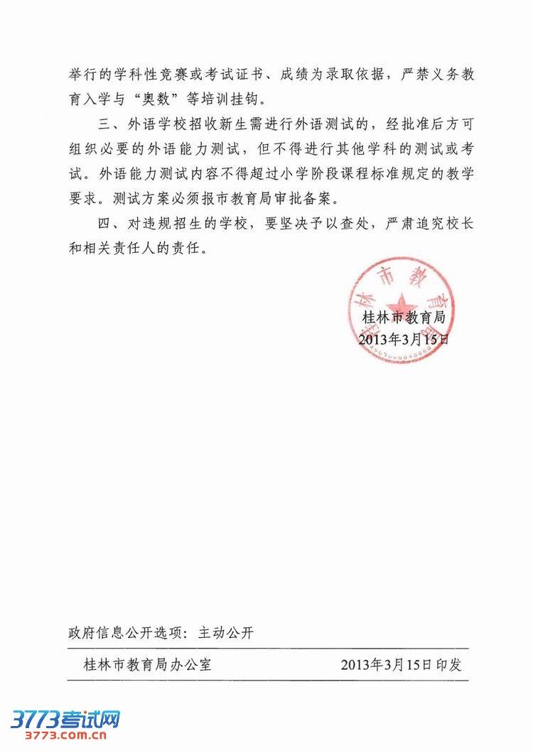 [组图]桂林市教育局关于2013小升初招生行为通知