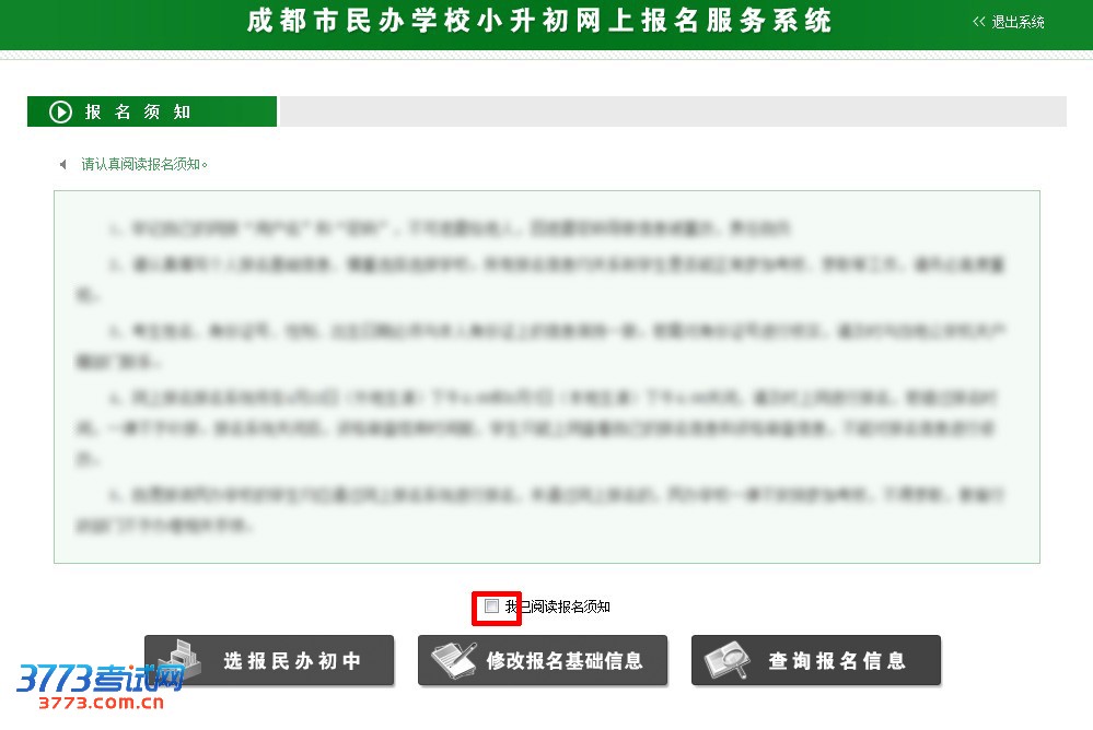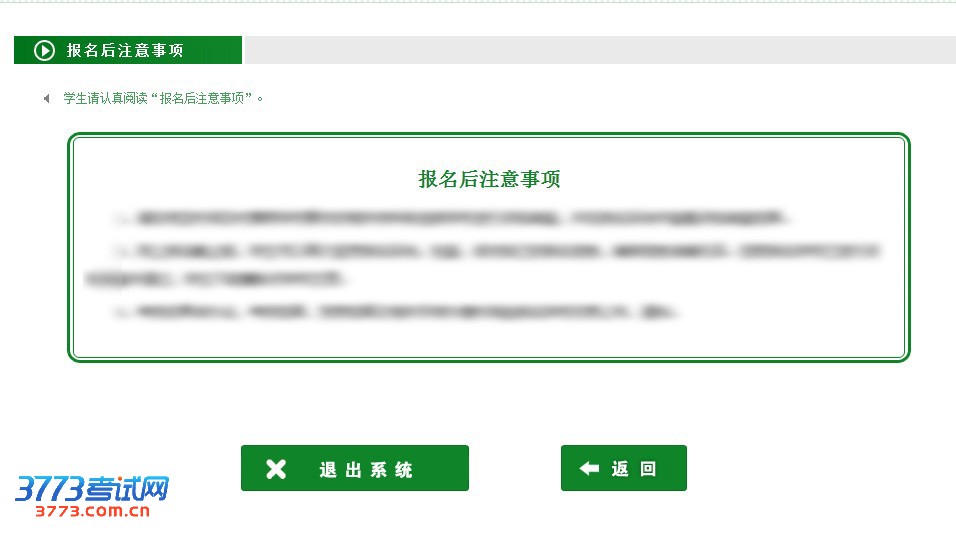 6、若信息无误,查看报名后注意事项。查看结束,点击“退出系统” 框,结束志愿填报。