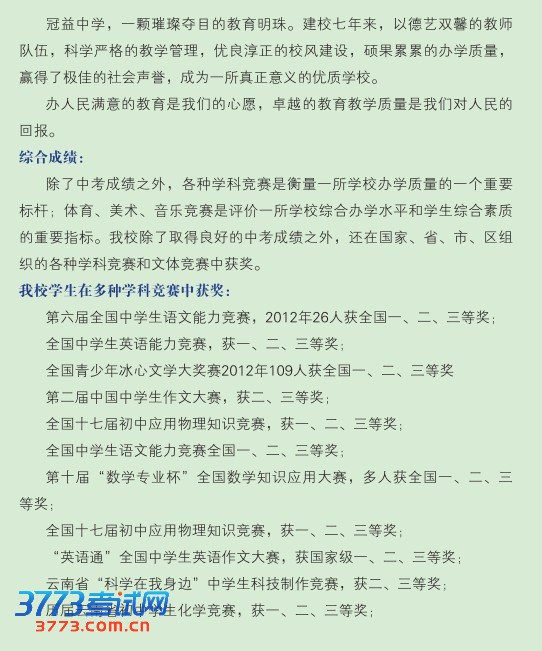 [组图]冠益中学小升初2013年招生简章