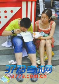 上午成外考试,下午实外考试,两校的考点一样,同时报考了两所学校的学生就需要在学校旁边解决就餐问题,有的家长为了让孩子吃上热饭,上午10点钟就点好餐,在餐桌前占位等孩子考完。市民张先生没有在餐厅占到位子,走了快半个小时才买到了两个盒饭。