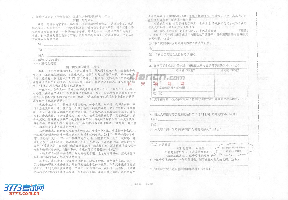 [组图]2013西工大附中分校小升初测试试题