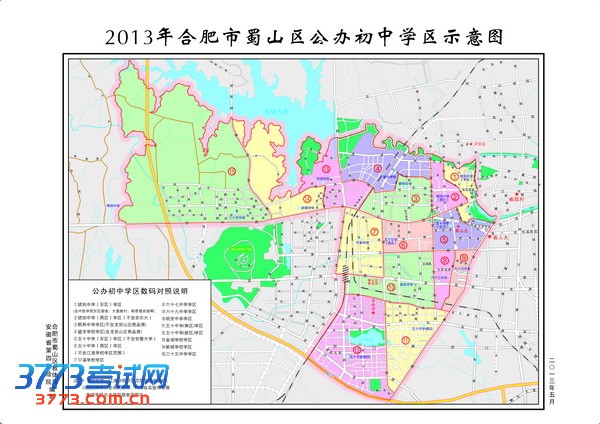 2013年蜀山区公办初中学区范围