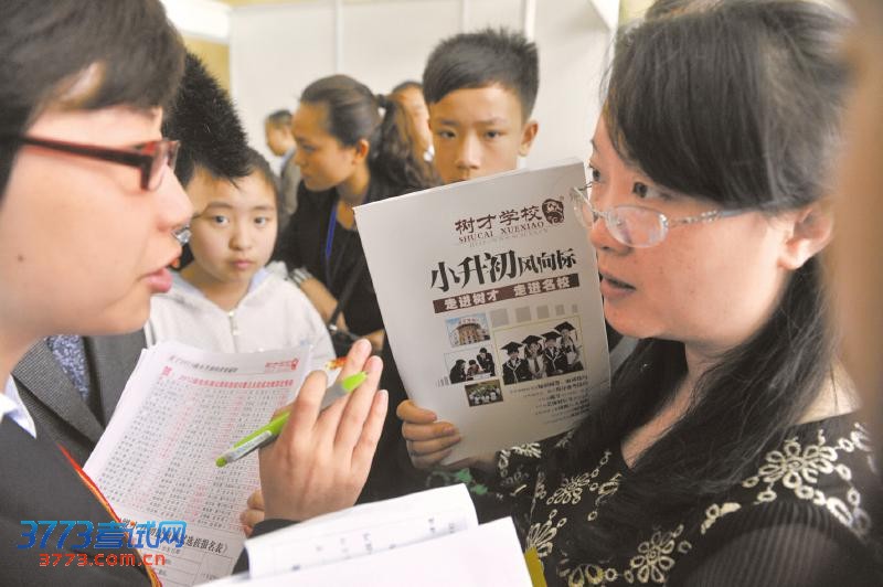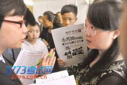 4月4日,学生和家长咨询小升初情况。吴小川摄(新闻资料图片)